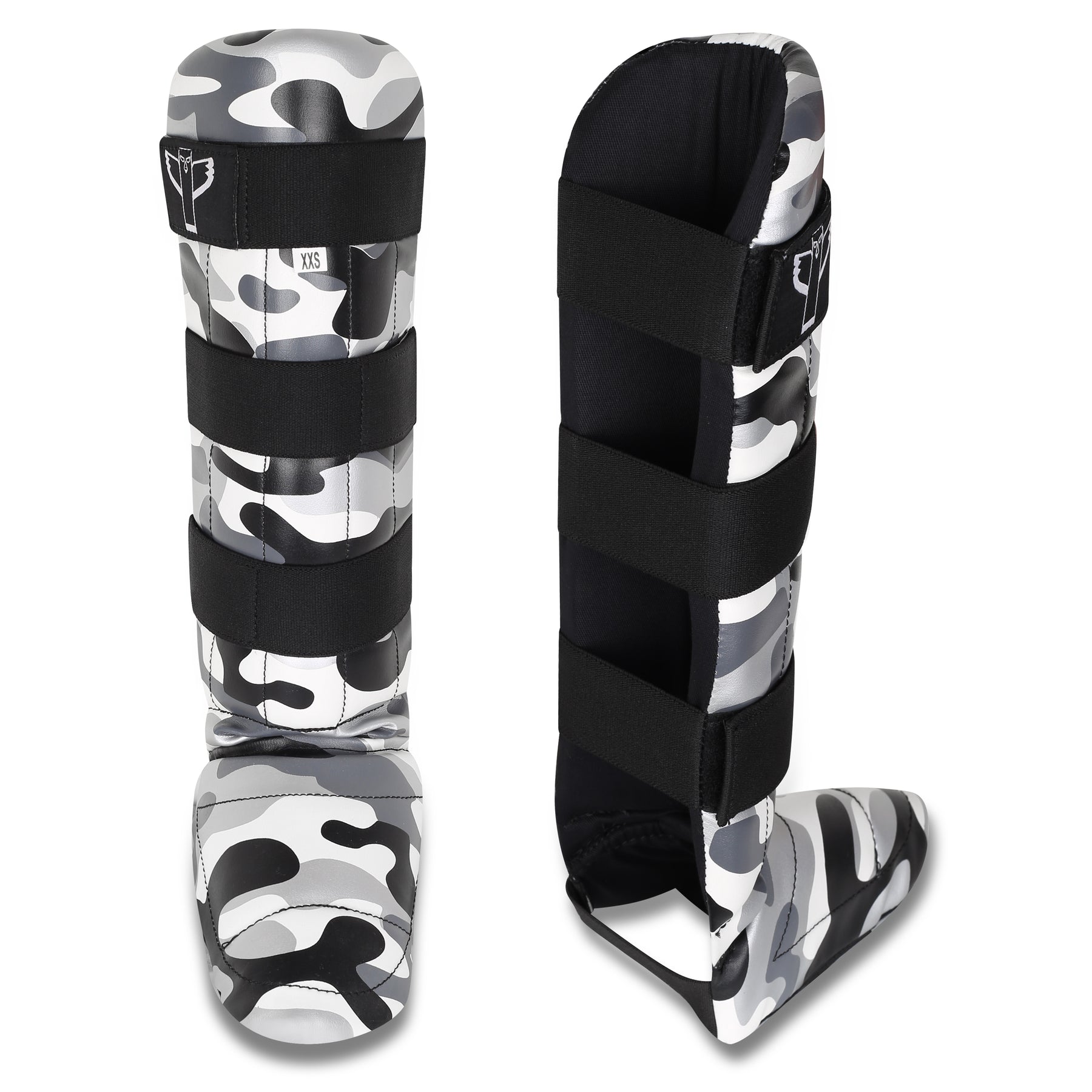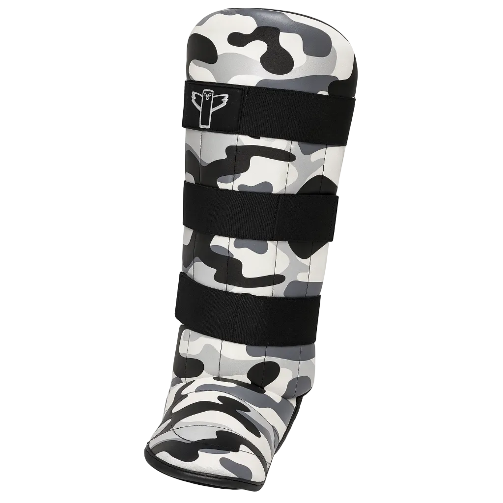 De drie stevige klittenbandsluitingen zorgen ervoor dat de scheenbeschermers goed blijven zitten, ook tijdens intensieve trainingen. De duurzame buitenlaag van PU-leer is makkelijk schoon te maken, en de zachte binnenvoering voorkomt irritatie op de huid. Het stoere grijs-witte camouflagepatroon maakt de look helemaal af.